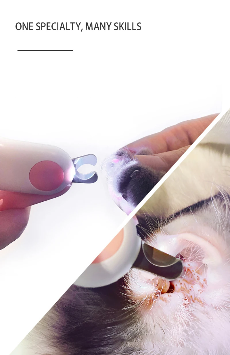 2. Built-in LED light, bright LED light can clearly illuminate the bleeding line, prevent nail bleeding caused by excessive trimming;